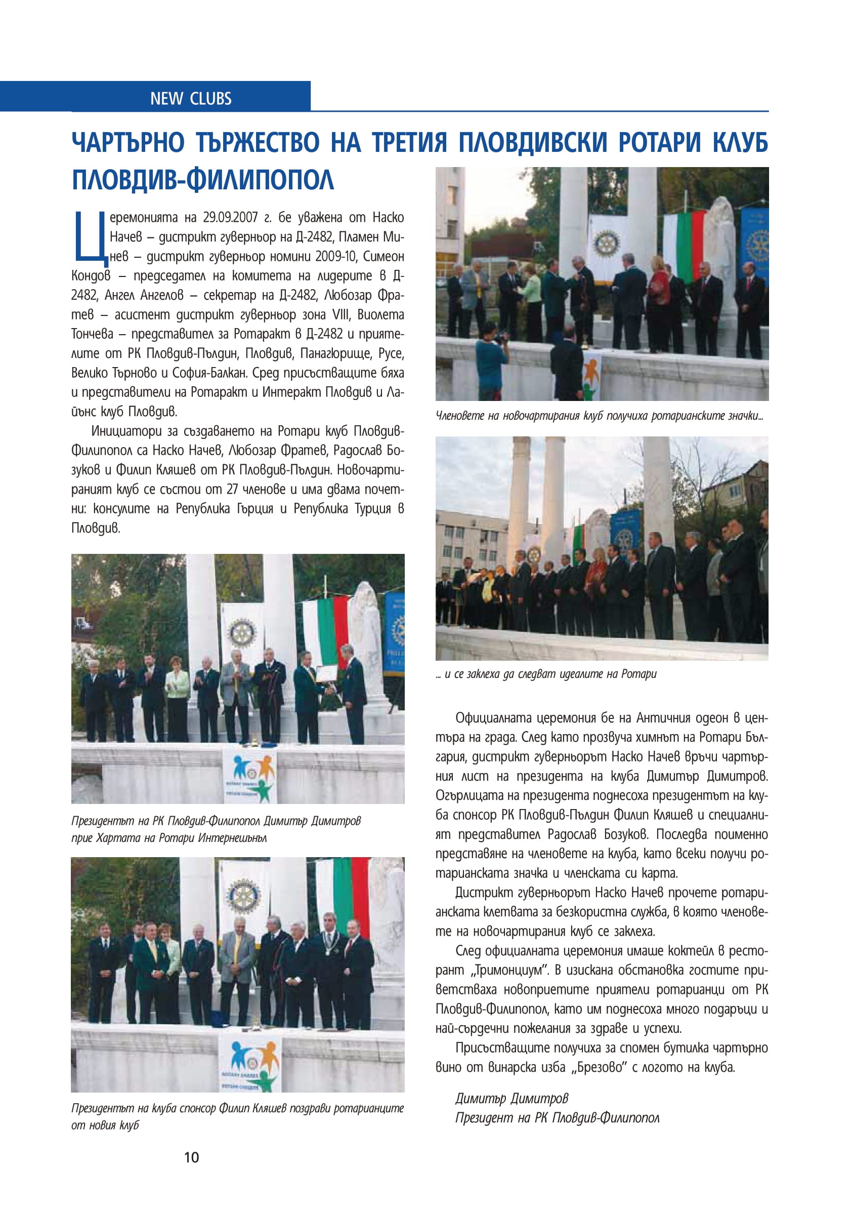 Чартърно тържество на третия пловдивски Ротари клуб Пловдив- Филипопол